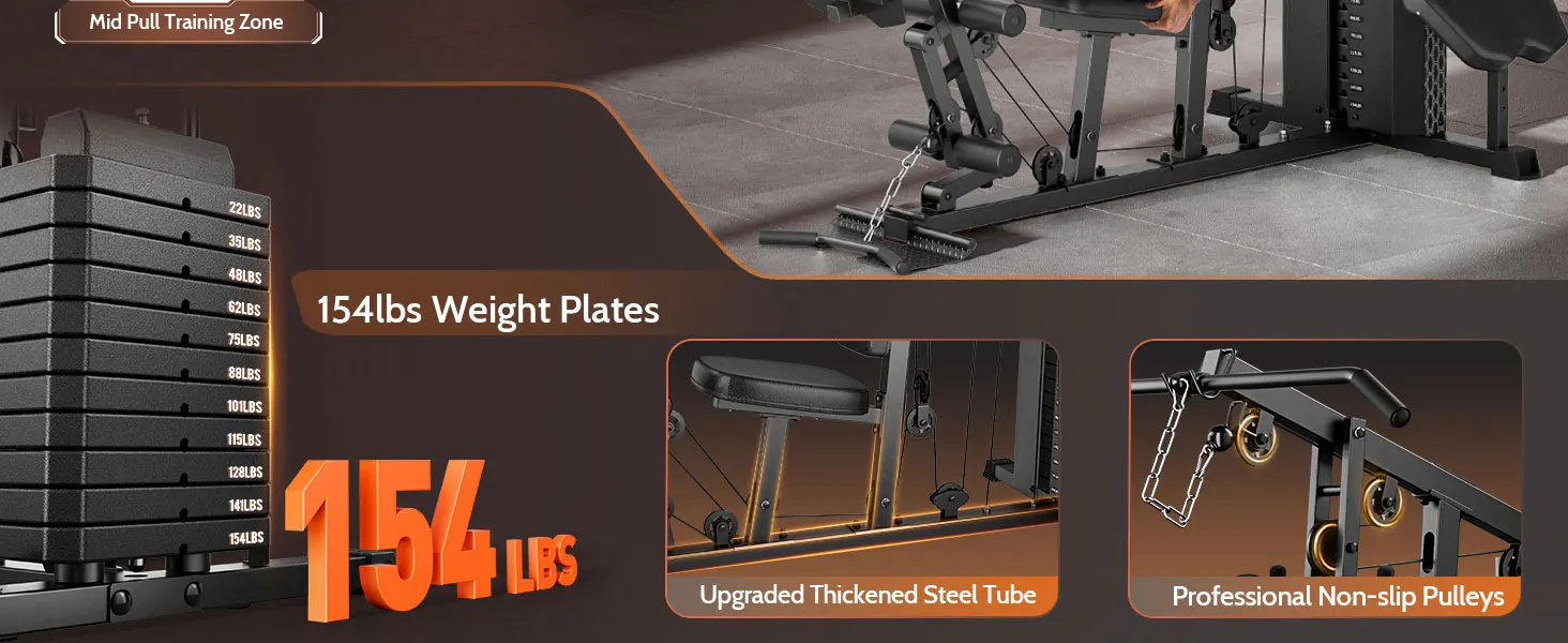 Gym with 154LBS Weight Stack, Multi Exercise Equipment with Leg Press, Cable Machine Exercise Equipment for Full Body Workout