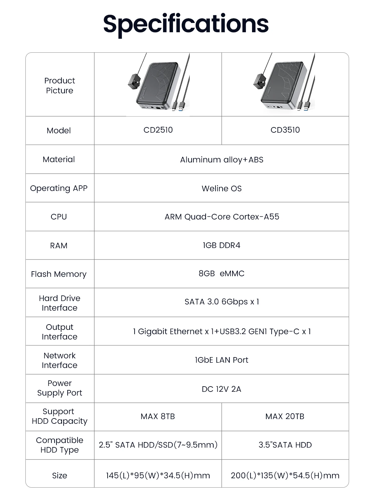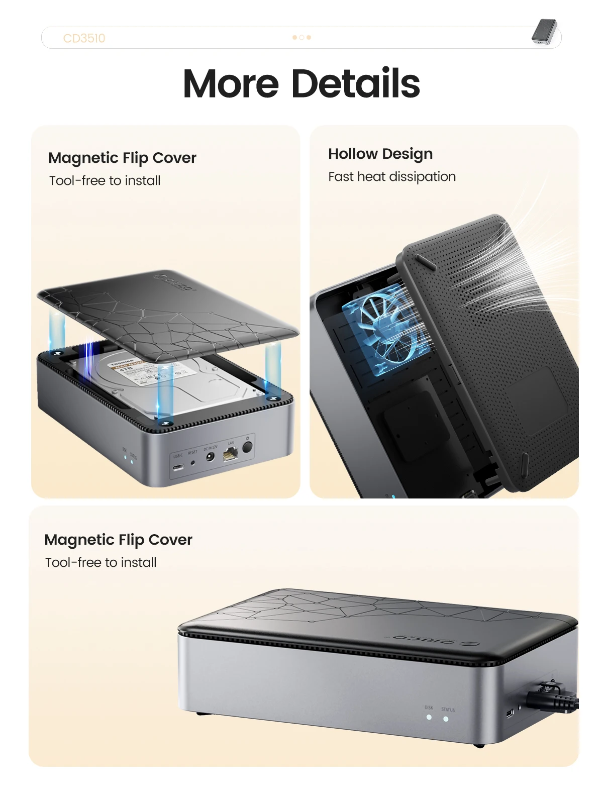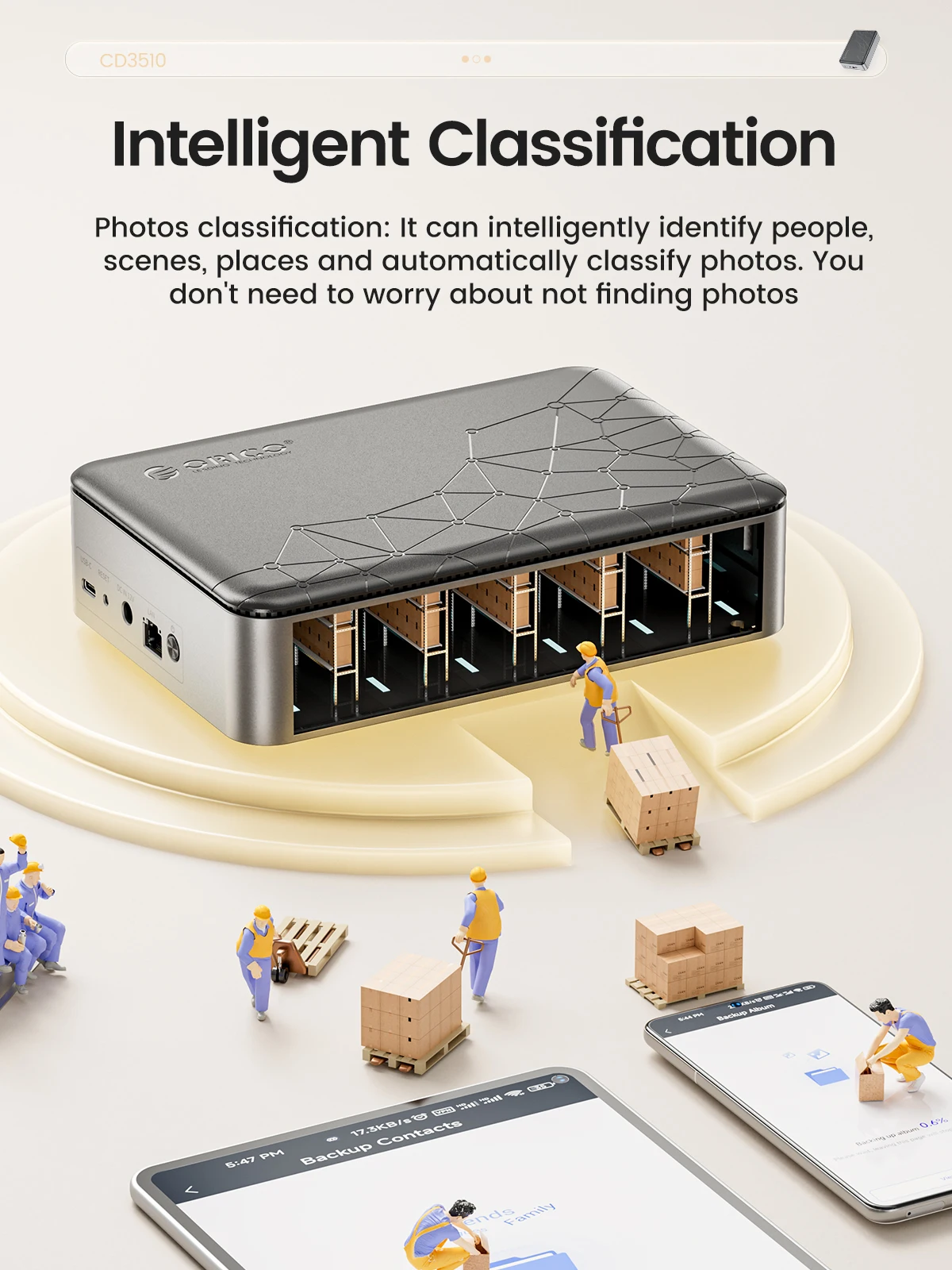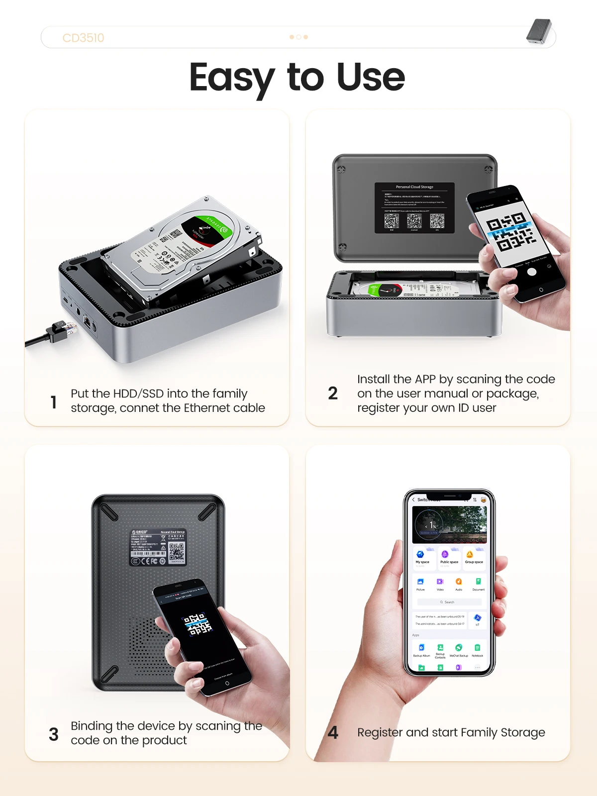 ORICO personal storage is for general users, after loading a SATA hard disk and connecting to the home network, you can store all digital content in your own private storage device.