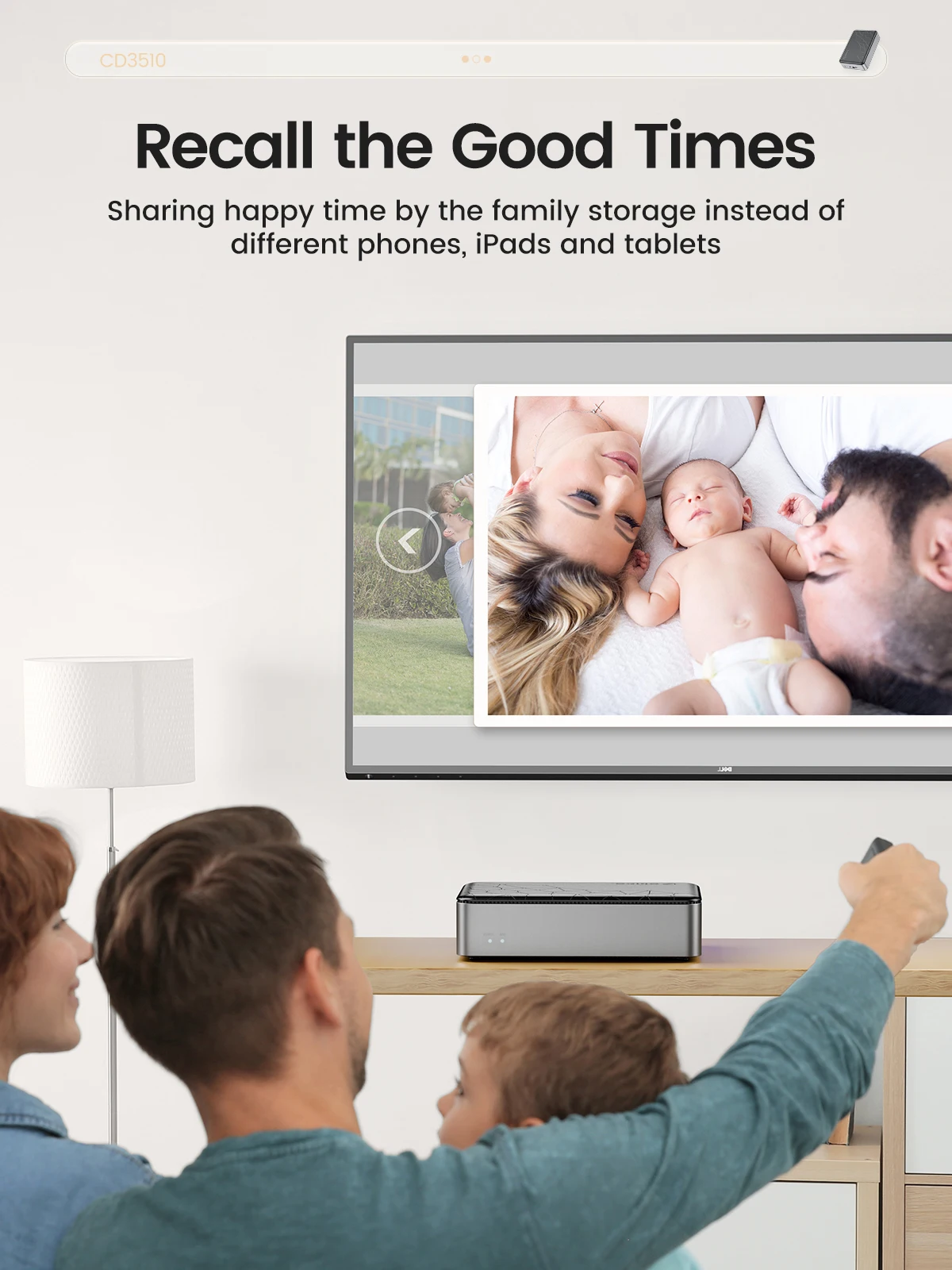 > Sharing happy time by the family storage instead of different phones, iPads and tablets