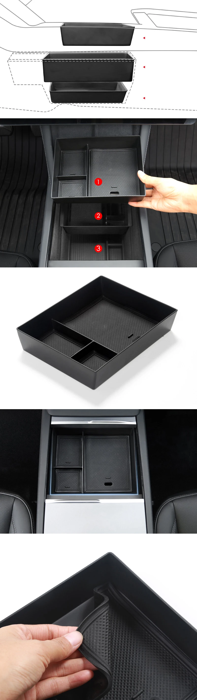 Storage Box for Tesla Model 3 Highland 2024 Accessories Center Console Armrest Storage Box Stowing Tidying Model 3 2024 Highland